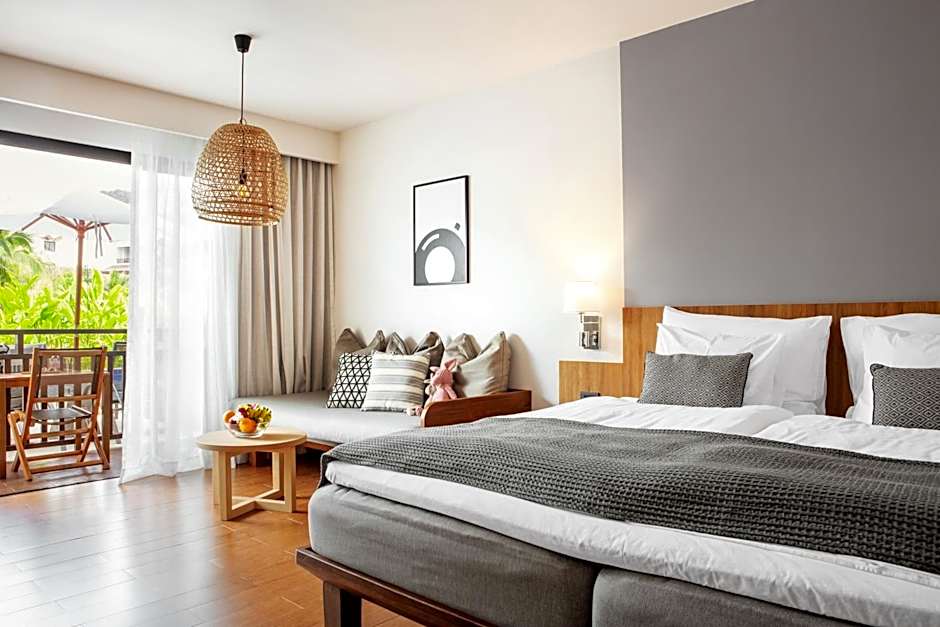 Studio Pool View includes either a king-size bed 150-183 width or 2 single beds 80-130 width plus a sofa bed.